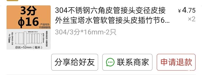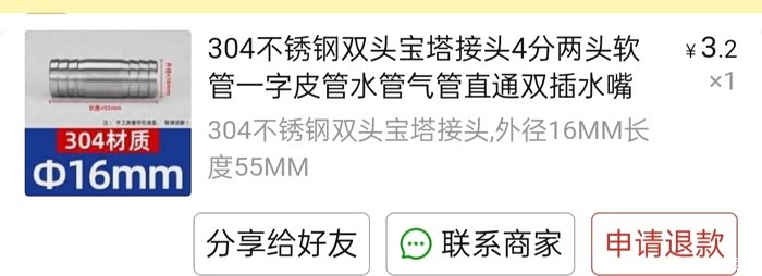 这个16变径皮接必须要买,因为透气壶上是10mm接头,需要换一下,两个就够。