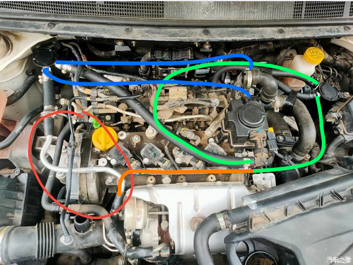 接管如图,小呼吸没什么要注意的,就是一根短管,大呼吸麻烦一些,接管注意不要挤到或者碰到其他管路还有刹车泵油壶,时间长了会有磨损,如果挤到还会影响其他部位的密封性,本人修过10年车,每个车的线路管路都是设计好的,位置都是谁也不影响谁的,加装部件一定要考虑其他部件的工作状态,要不然会造成磨损,异响,常年受力挤压变形。