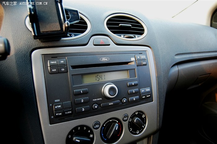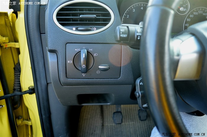 不过那年代的福特车都有个仪表盘亮度提醒的旋钮,也是搞不清楚有什么必要。三幅的真皮方向盘现在经典福克斯上也有了,背后有个很鸡肋很不好操作的音响控制按钮,也算是“多功能方向盘”吧。