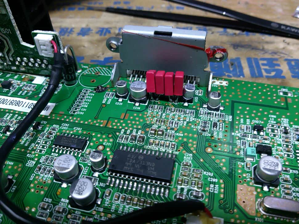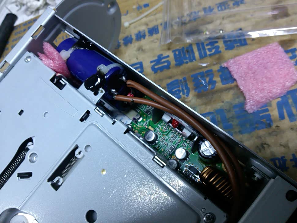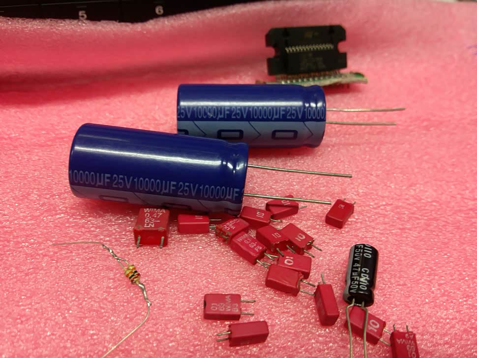 没什么主意~直接代换就可以了,输出电容全部拆掉不然会自激。前级到后级的耦合电容换成威马0.1uf,供电的4700换25v10000uf。我用两个做了个小水塘!嘻嘻