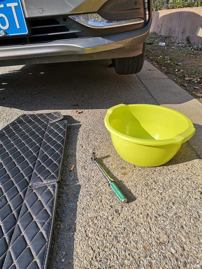 由于这放油螺丝拆装几次了,上面的密封胶都没了,买的新螺丝又还没到,只能生料带伺候了,其实也没事。油放好了就可以把盆拿一边,先装回螺丝复原了,螺丝力矩12n/m