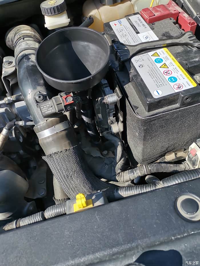 这个量杯环节是非常重要的,个人取名叫等量重力换油法吧,省去了麻烦的校准油位环节,放多少油就加多少进去,不太适合二手车或者给外边修理厂换过油的车,必须自己对这车保养知根知底的,怕之前油量就不准。