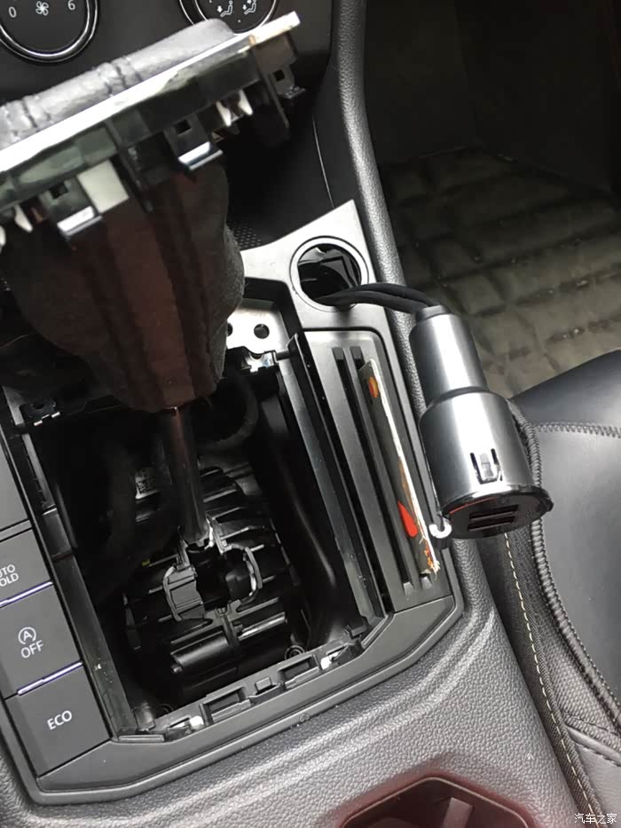 你这做法太笨了,我也是跟你同款车,我在副驾驶左腿边开了个孔,把两个usb移过去了,档把旁边重新接的12v点烟器口,因为原车两个usb可以读取内存卡里的歌曲,带数据传输的,你把他直接剪短了