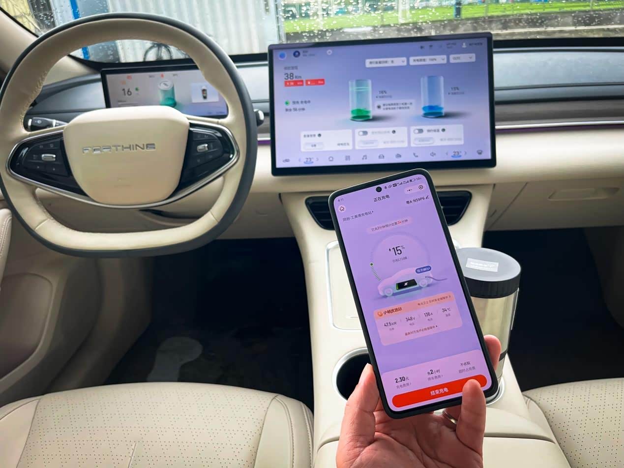 这车有个很好的细节,是可以直接在手机上检查电池状态,而且能看充电进度和操作,晚上回家把车停楼下充电,我都是手机上看进度,蛮方便的。