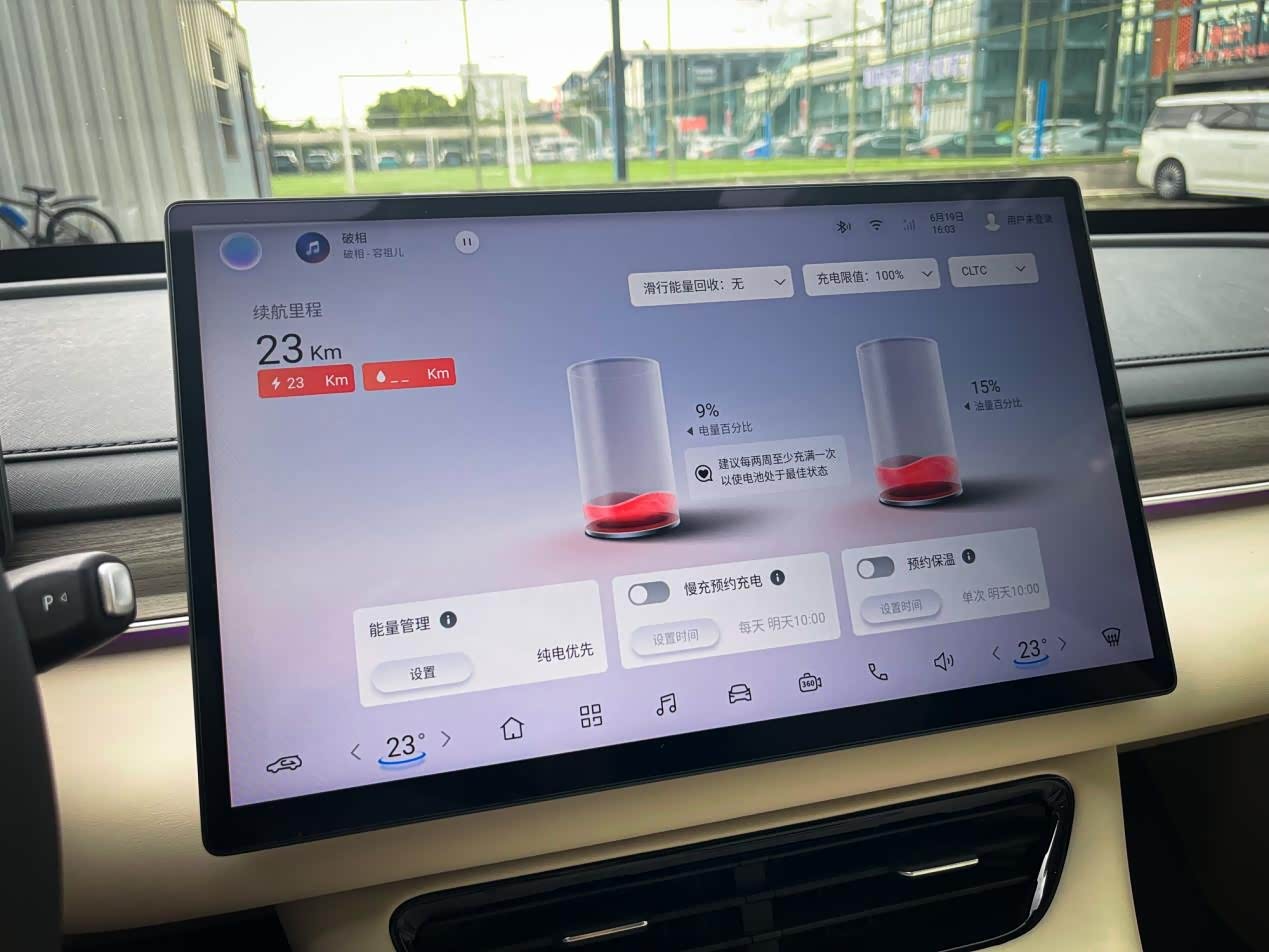 电量就剩9%了,油量也只剩15%。我也真是长见识了,借完车不加油、不充电,以后我绝对不借车出去了!