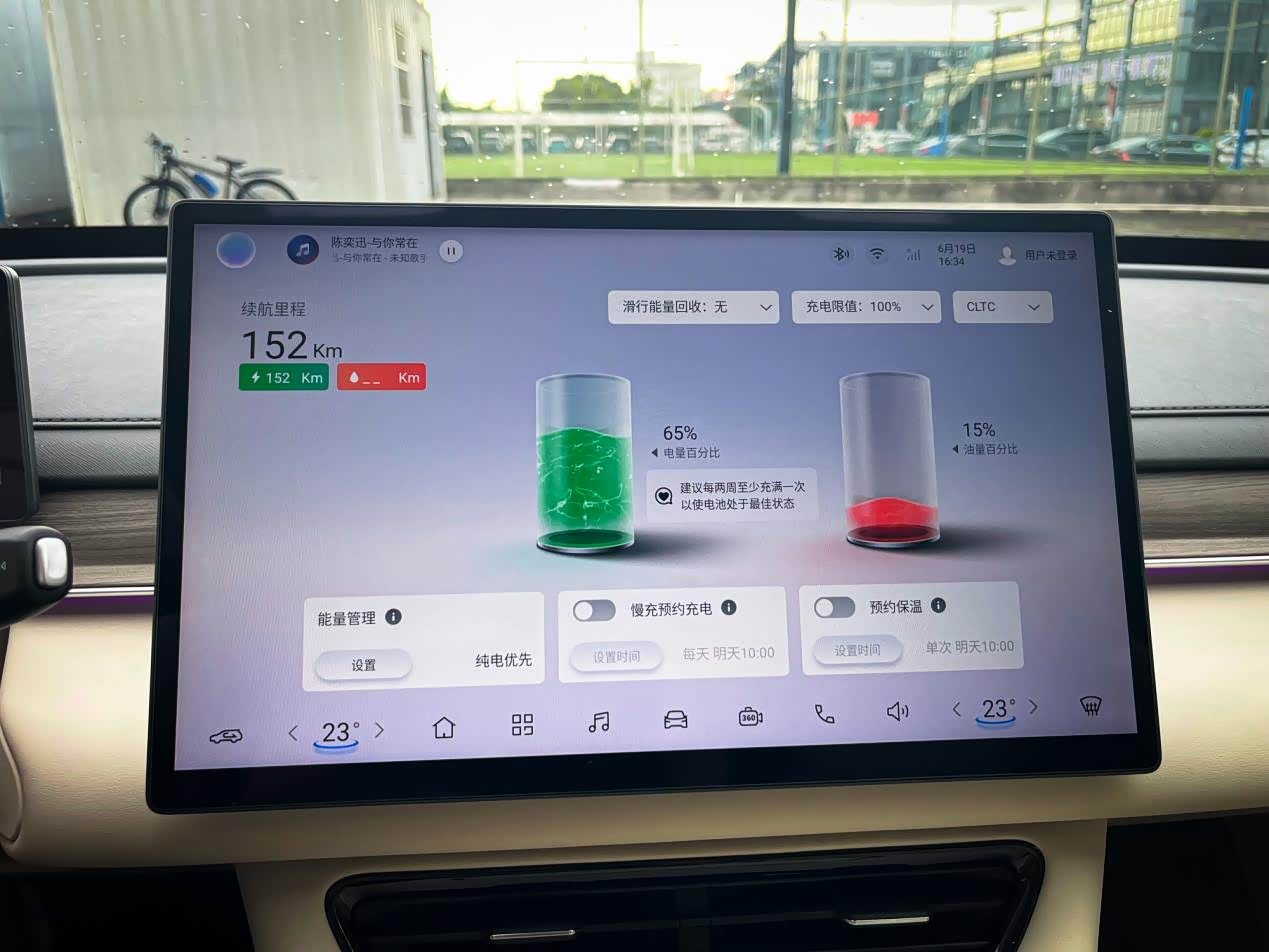 电量和油量在大屏幕上显示得很清楚,特别直观。其他相关的功能设置也都能同时展示,果然大屏就是好用。