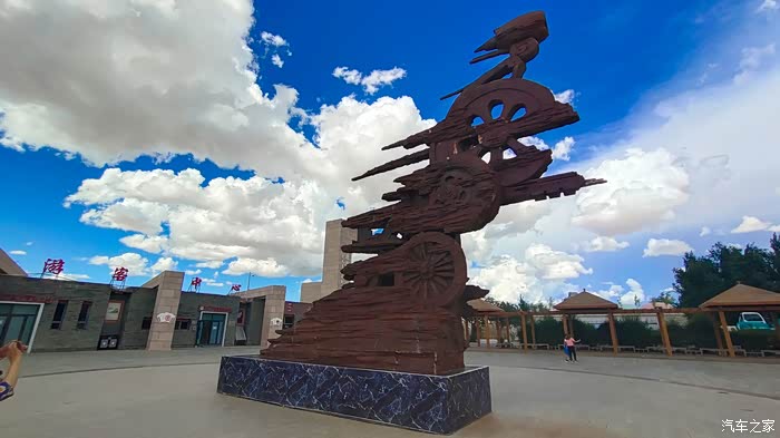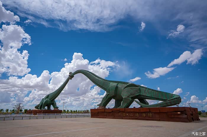 。再没几公里,远远看到两只绝大的恐龙相对而立,恰似一座大门,迎接来此的人们,208国道从中间穿过,这就是著名的“恐龙市门”,是进入二连浩特市区的主要视觉标志,其周边区域包含中比联合恐龙化石发掘现场及巨盗龙化石发现地。停车区下车感受一下远古的呼唤。