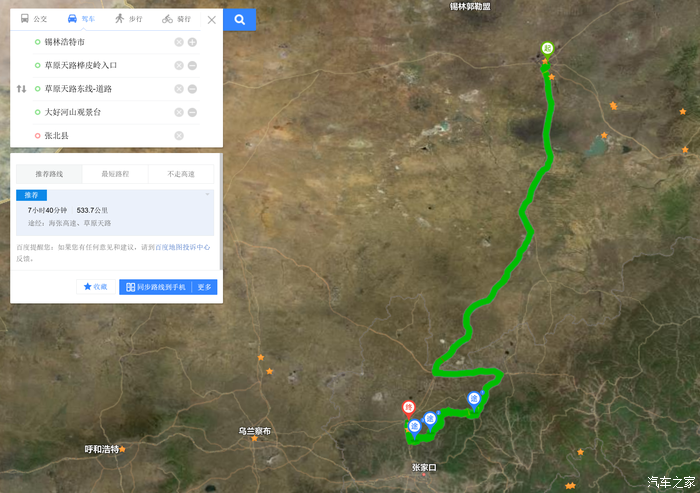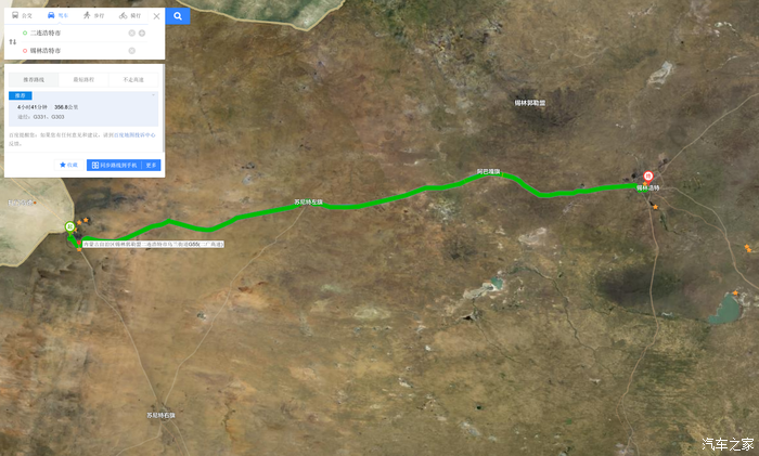 导航时务必注意,从锡林浩特出发走草原天路东段,中间一定要添加途经地点哈,否则都一直让您走高速,或者抄近路,把天路绕过去了