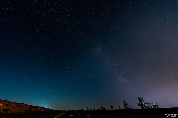 第五站,那片私属夜空。在一条新建且人迹罕至的高等级公路,直接路边停车,留下了边境城镇的光影。城市的不断发展,让城市上空的夜空变得光芒四射,非常美丽。可惜拍摄星空效果就有点差了,还需要走得更远才行。
