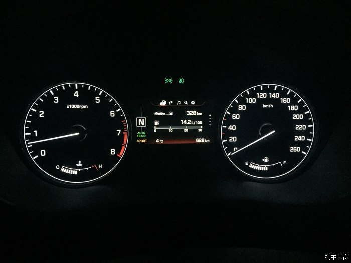 三、运动模式 仪表红色光,正常驾驶时发动机不底于2000转,降档积极。