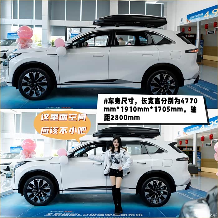 作为一款将近4米8级中型SUV,长安CS75 PLUS Ultra劲擎型的车身尺寸可以说达到了同级领先的水平,看这大身材,满足阿文全家旅游的需求应该都绰绰有余了吧。瞧,她已经准备进去车里看看了。