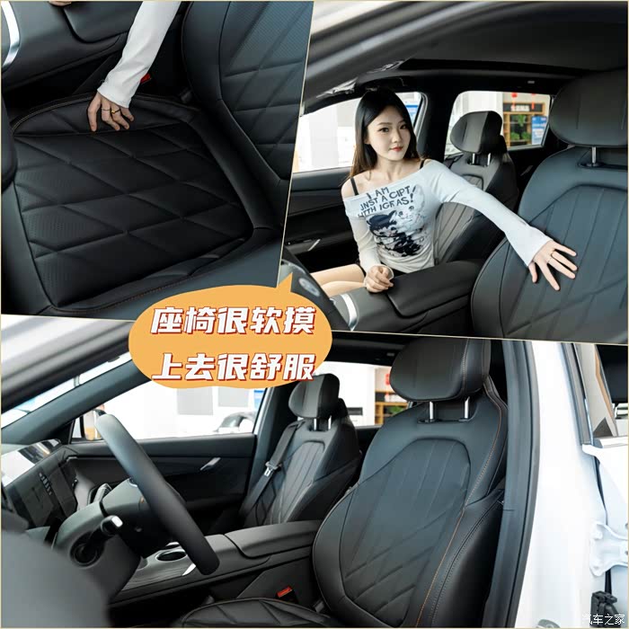 进入车内,有一种莫名的豪华感,内饰上是大面积的软性材质包裹,加上一些精致的缝线工艺以及高端的金属装饰件,我感觉也有豪车那feel了~
