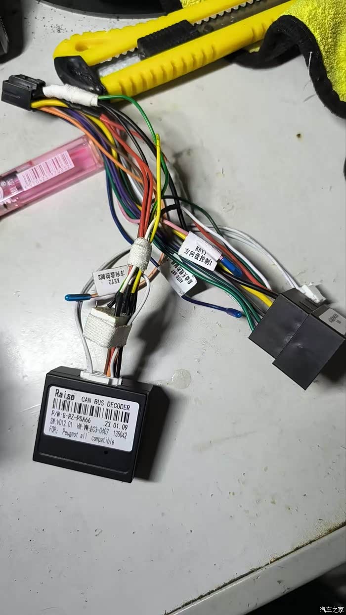 我对音质有点小小的要求,所以在咸鱼上买了一个全新的掌讯方案的2+32 的9寸百变导航,功放芯片声称是7850的。用惯了音乐手柄,舍不得这个功能,我决定给导航仪上协议盒,这样车上舒适网就可以与导航通讯了。经过我多方查找,确定了睿志诚的海外版psa66版本赛纳可以用,东西凑齐了就开工。