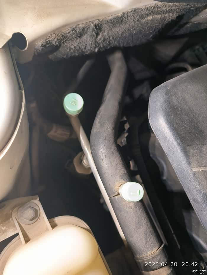 找到空调低压管路,绿色小帽子上印的有L字样的就是。拧开它。