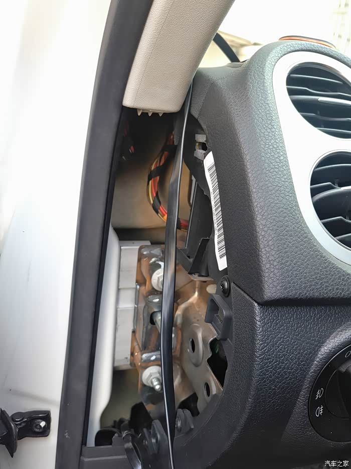 下图,OBDⅡ接口位置,在驾驶员脚下位置的上面,拍下就可以看到了,粉色接口那个。