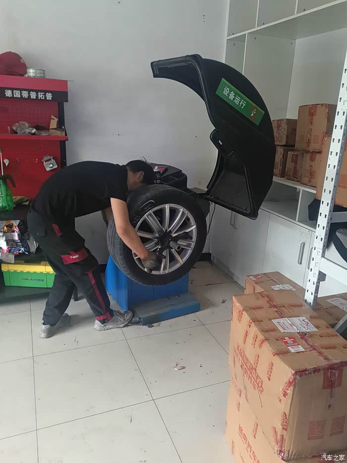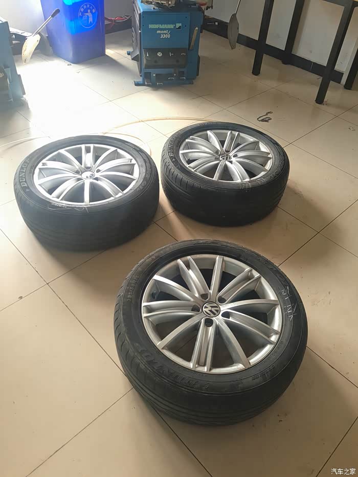 等待安装的样子,我顺便把轮胎前后调换了一下,3年多了。