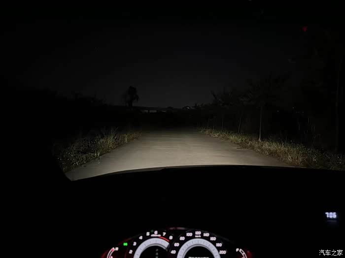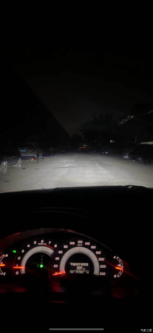 原厂大灯显得很昏暗,根本照不到回家的路。
