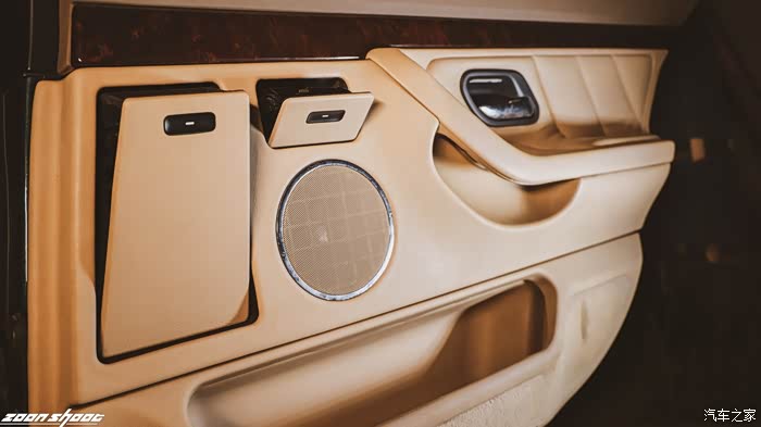 目光转到中控台,主机已经被更换成了更加现代且实用的阿尔派机头,再配合上全车音响的改动,我相信这台车就像是一座移动的歌剧院。华贵的车门无论是当时还是现在都可以被称为艺术品,即使配备了烟灰缸,我想也不会有人暴殄天物吧?