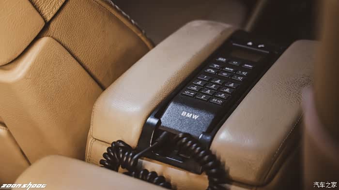 一部大哥大电话,出现在了前排司乘人员最顺手的扶手箱中央。即使现在人手一部智能手机,但我想,在车上拿起它时所带来的感觉是一部最顶级的现代手机都无法带来的。