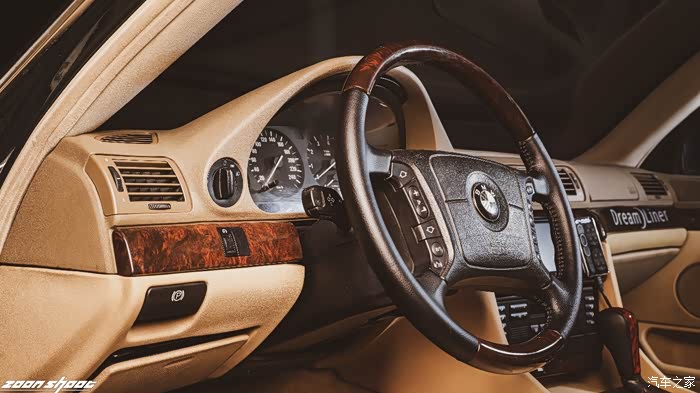 本次的主角是一台2000年的E38,搭载的是2.8升的M52B28TU直列六缸发动机,马力193匹,扭矩280牛米。这里要跟大家科普一下宝马的尾标中iL和Li的区别,i代表汽油发动机,L代表加长。在宝马第四代之前都是用iL这个说法,在第四代之后,全面使用Li这种形式。