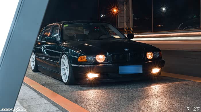 夜幕降临,打开车灯的E38又呈现出了不同的质感。黄色卤素大灯和雾灯的组合虽少了一丝科技感,但其与生俱来的霸气和温馨是现在的LED或者激光大灯都无法比拟的。仿佛一位老者娓娓道来,向对方传递着人生的经验。