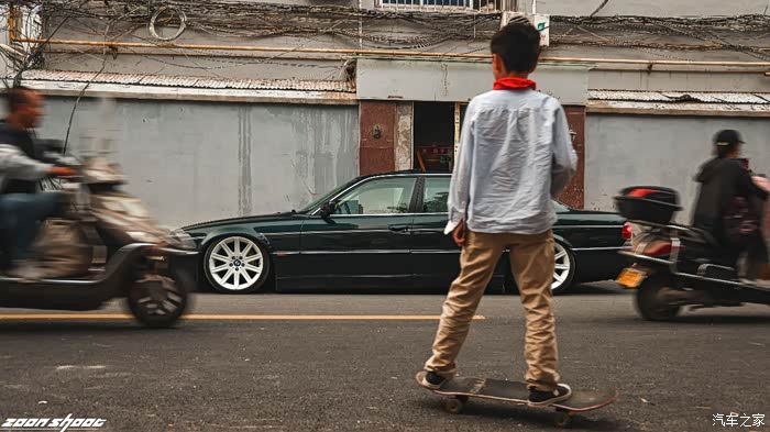 拍摄中我们遇到了一位滑着滑板的小朋友,看年龄应该还在上小学,见到这台E38,他也停了下来细细观赏,但他也确实和车保持着一定的距离。我想,这段距离叫尊敬。而这份尊敬在比他更年长的我们这一代来说,似乎有些缺失了。但由此可见,老车并没有失去它应有的魅力,经典的设计永远会被传颂。