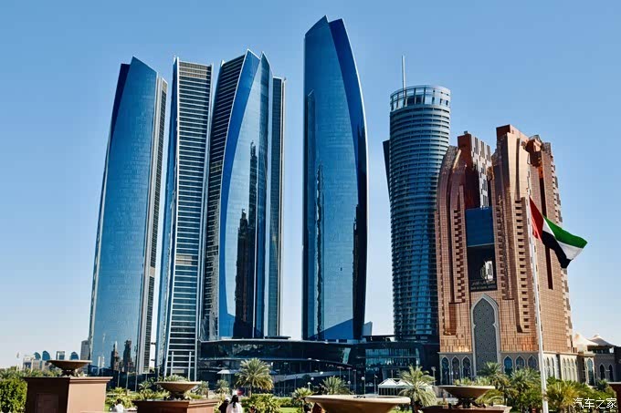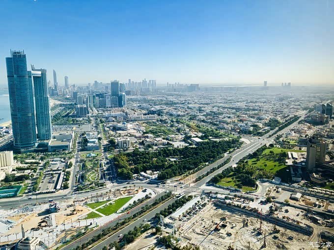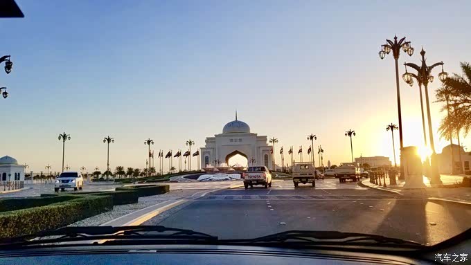 我们从法拉利主题乐园出来大概开了40分钟车程就到了酒店附近。黄昏时间的阿布扎比海滨大道和阿提哈德大厦真的很美