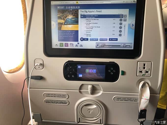 国际航班配置齐全,对我而言最重要的充电口有就很完美了,不妨碍我玩“梦幻花园”打发时间。阿联酋航空的空乘各个都挺有气质的,虽然是A380的经济舱,位置倒也十分宽敞了,每个座位发放了1个毯子+1副耳机,乘机必备的东西就都有了