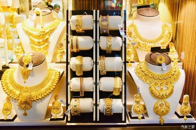 各个店铺橱窗里的黄金饰品像卖菜一样陈列着