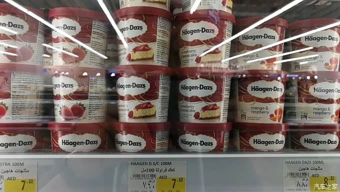 迪拜mall里的哈根达斯,与小朋友抢着排队购买的我,拿到手兴高采烈吃起来,结果最后被甜齁到没吃完扔了。迪拜买哈根达斯蛮便宜的,有多便宜呢,放一张超市里的照片~~