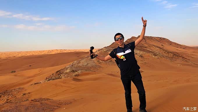 很快我们就到了沙漠中,在冲沙项目开始前,司机把我们载着停在了一出沙坡上,方便我们拍照。
