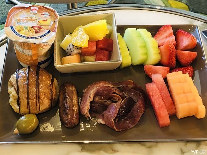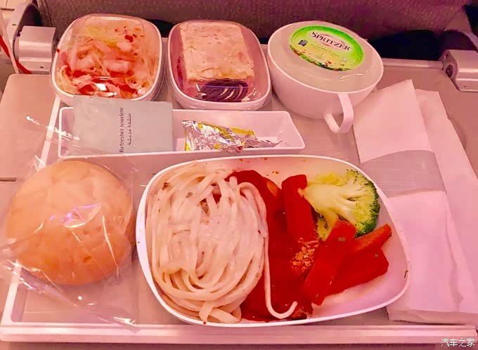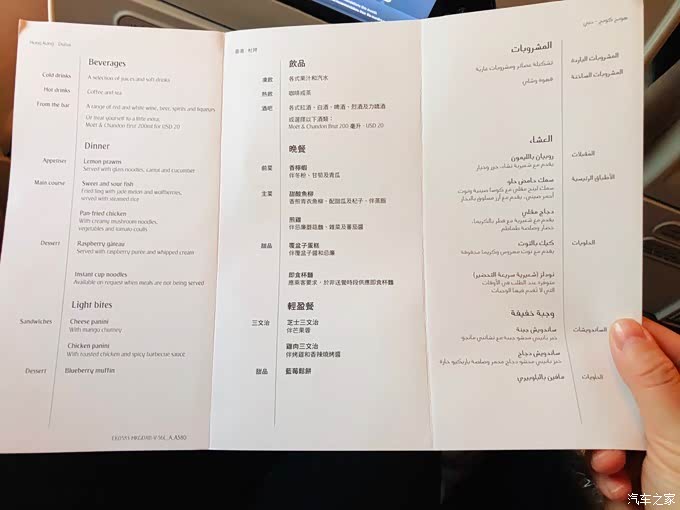 起飞前空乘发放了当班的菜单,在阿联酋航空app“我的用餐喜好”处,往返航班我都选择了阿联酋航空餐食,先生都选的水果拼盘。经济舱航空餐就不要奢望啥了,能吃就行了,综合起来也算丰盛,还有非餐食时间提供杯面,如果想喝酒的可以提出来,有板酒供应(威士忌、红酒、伏特加)。