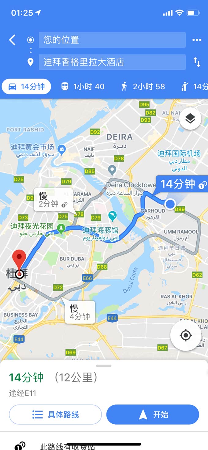 国外自驾导航我基本都选择使用的Googlemaps,靠谱一点。只是在迪拜往返阿布扎比自驾过程中,会出现gps信号弱而导致定位不准的情况,所以在租车自驾过程中导航只是辅助,最重要的还是得看清楚实时路标,防止开错路造成不必要的违章