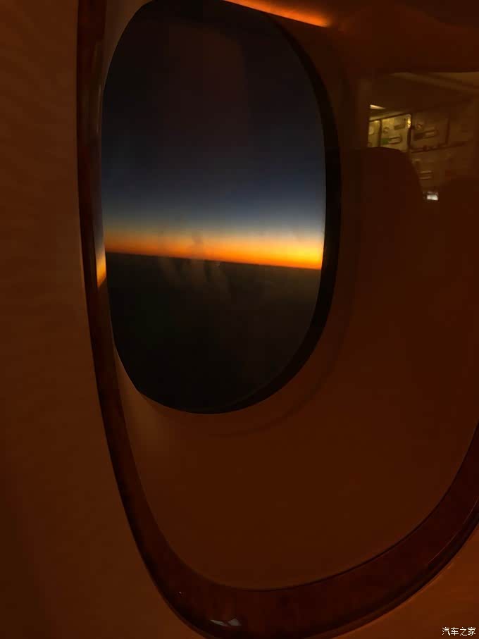 起飞后能远远看到黄昏景色,因为迪拜与香港有4个小时时差,所以总有一种逐日的感觉