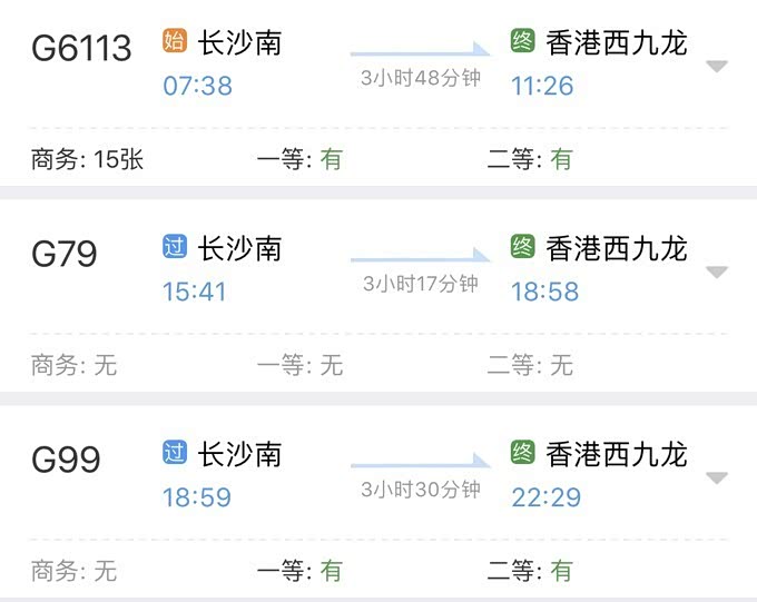 从长沙南坐高铁直接到香港西九龙站,然后转机场快线到香港机场,坐飞机往返迪拜机场。春节的票非常难买是众所周知的事情,所以为了抢2月2日和2月10日的高铁票往返香港西九龙,我早早订好了闹钟守着点抢票,不过貌似南下的票没有北上的票难买,完全不费力就抢到了。长沙南往返到香港西九龙的高铁1天只有3趟,分别是早中晚各1班