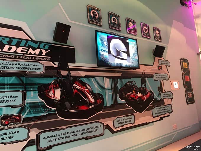 园区里还有卡丁车比拼体验,这个项目是不包含在门票内的,需要单独购票40迪拉姆/人,我们是当天下午3:10那场,玩完出来先生一直骄傲地比划拿了我们那一组的最快圈速,我估摸着计时器一定不准