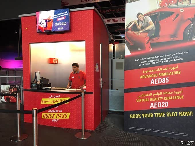 园区里还有VR体验,我们体验的是5D模拟器驾乘体验,这个同样是未包括在门票里的,需要单独购票的,85迪拉姆/人。我选的法拉利,先生选的F1赛车,虽然是同时进行的,但是无法联机比拼。游戏过程中乘坐的车辆连着4个液压杆的拉伸,会随着拐弯、碰撞等车辆会发出相应的抖动和移动,使游戏真实性更高。但是说实话感觉玩下来有点头晕