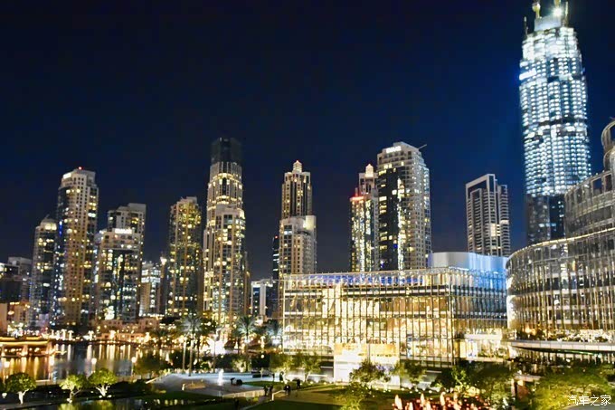 到了领餐时间,先生排队去领餐,而我在位置上守着相机和背包。前一天吃了大餐的我们并不觉得沙漠自助晚餐好吃,所以建议各位自备一些吃的带着出门冲沙。迪拜与中国有4个小时时差,临近北京时间12点手机微信里各种信息飞来,家里群里也下起了红包雨,可是沙漠信号非常差,时断时续的信号根本没法回拜年信息和抢红包,当地时间晚上8点多中国新年0点刚过,我们从沙漠出来回市区,信号一恢复便逐一拜年而在我们的旅游群里有在迪拜哈利法塔的旅友拍下了当晚的哈利法塔,也是非常应景的了