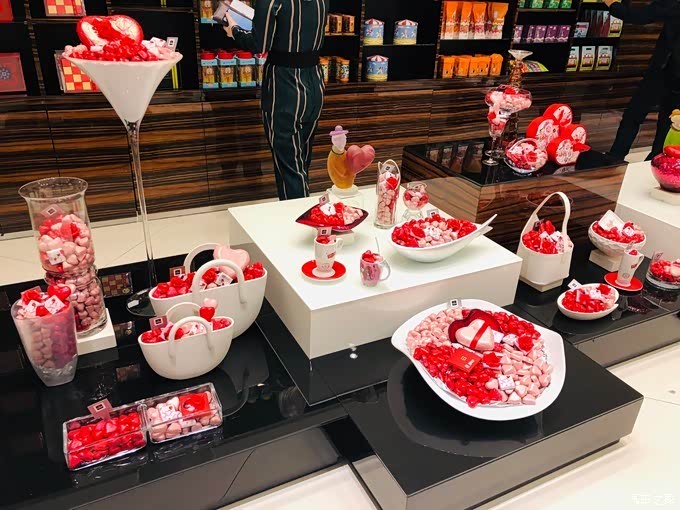 当天2月4号已经临近情人节,所以Patchi巧克力的陈列也主打起了情人节款。店里有礼盒装的也有散装,散装可以拼不同口味的,经典口味的是110迪拉姆/500g,相当于人民币差不多200元。