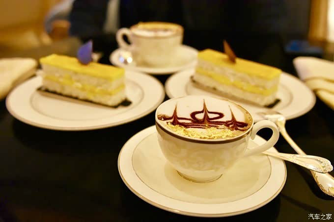 出示电子订单后,服务小哥安排我们坐下,不久我们的金箔咖啡+金箔蛋糕就闪亮登场了。拍出来还是挺好看的,至于吃起来嘛。。。。真的有点一言难尽