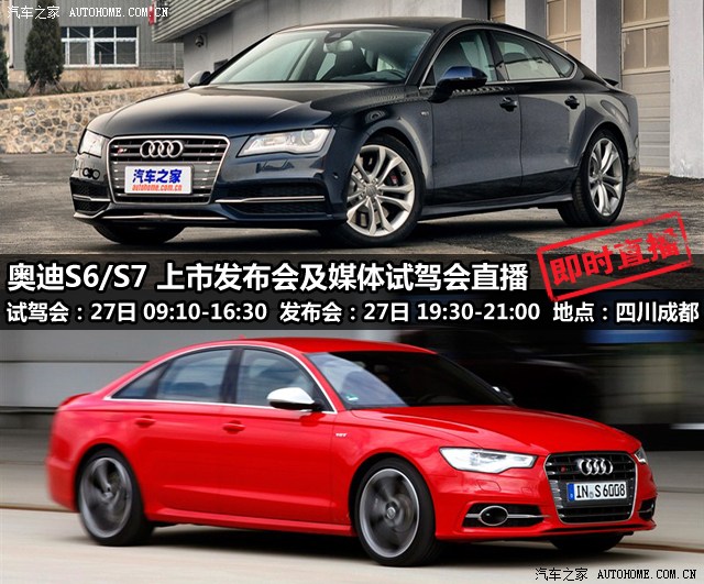 奥迪S6、S7想打败宝马的M、奔驰的AMG,还需要有一个令人满意的价格,3月27日19点30分奥迪S6/S7上市发布会,将在成都新元素奥迪城市展厅举行,届时小编将在发布会现场做即时直播,亲们一定不要错过!另外,奥迪S6/S7的27日媒体试驾环节,将在成都国际赛车场举行!这两辆令无数车迷喜爱的性能车能否技压群雄?他们将会有一个怎样的价格?答案即将揭晓,关注小编,关注汽车之家!