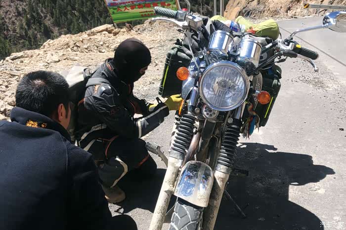 是热心的藏族兄弟帮忙拖车,