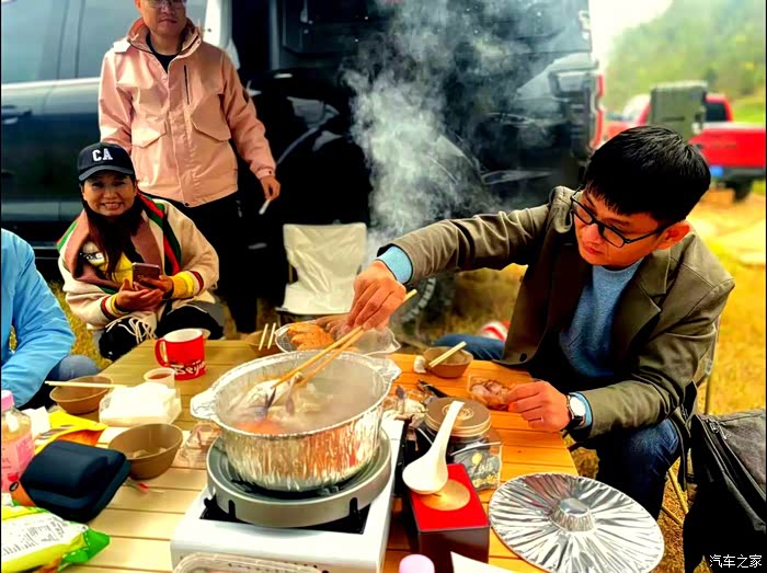 虽然降温了,但是大伙的野营热情对于这点风雨来说根本无法阻挡