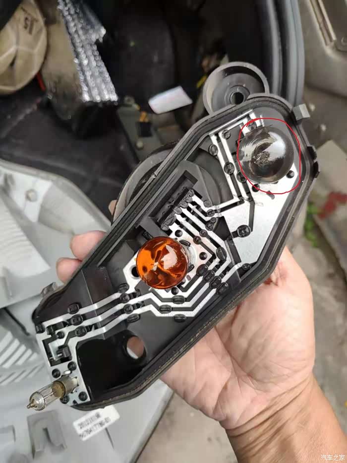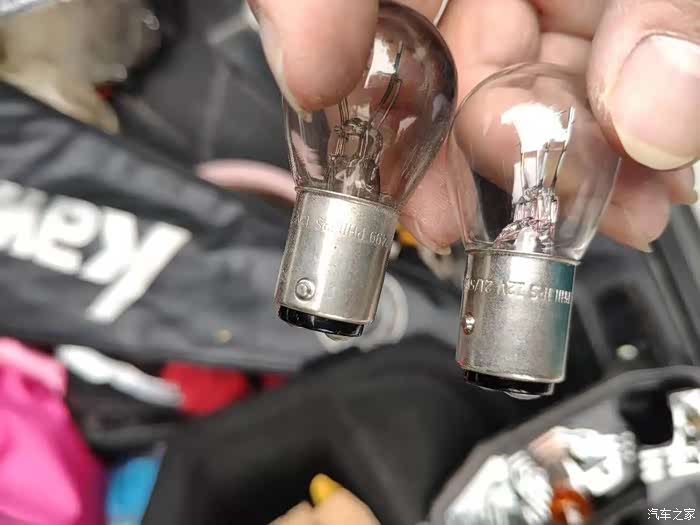 到年检时间了,杭州,前几天自己开车去年检,交了180块。行驶里程6万多公里,线下线上检测外观尾气等指标正常,在大厅领证的时候被细心的工作人员发现右侧刹车灯不亮,要求维修好再来一次,强调补拍一张照片即可。立刻网购了两只飞利浦的灯泡,10元包邮。看论坛教程发现更换很容易,操作过程简单无油污。自己来吧。。。只需要一个10号简易扳手,手指头没力量的简易自备一个老虎钳子。用手掰开尾灯后的内衬。红色部分的螺丝用10号小扳手拧开,黄色和绿色的部分徒手拆开。将尾灯拉出来坏了的灯泡已经变黑了这是新旧对比,换上即可好奇心想打开这个塑料螺丝盖子,请教大家伙,这个只能破拆吗?