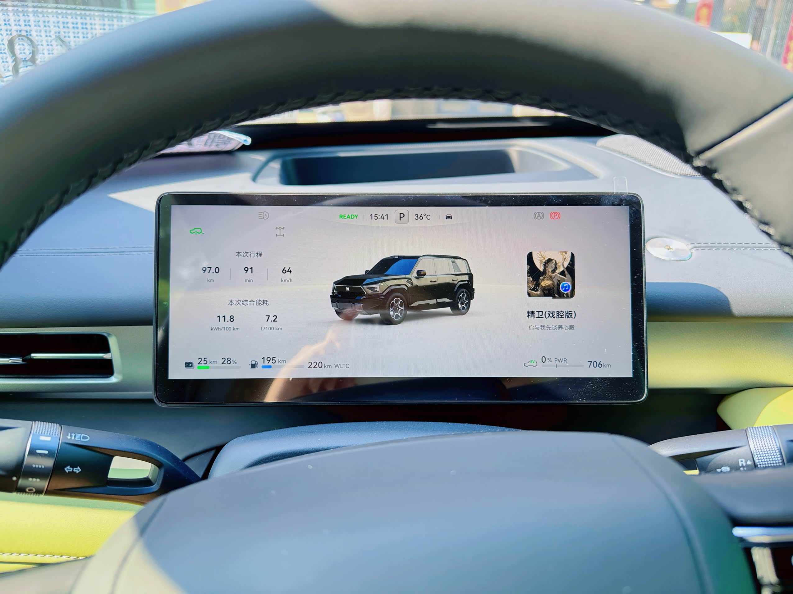 2、市区使用纯电优先模式,上高速就用油电混合模式;
