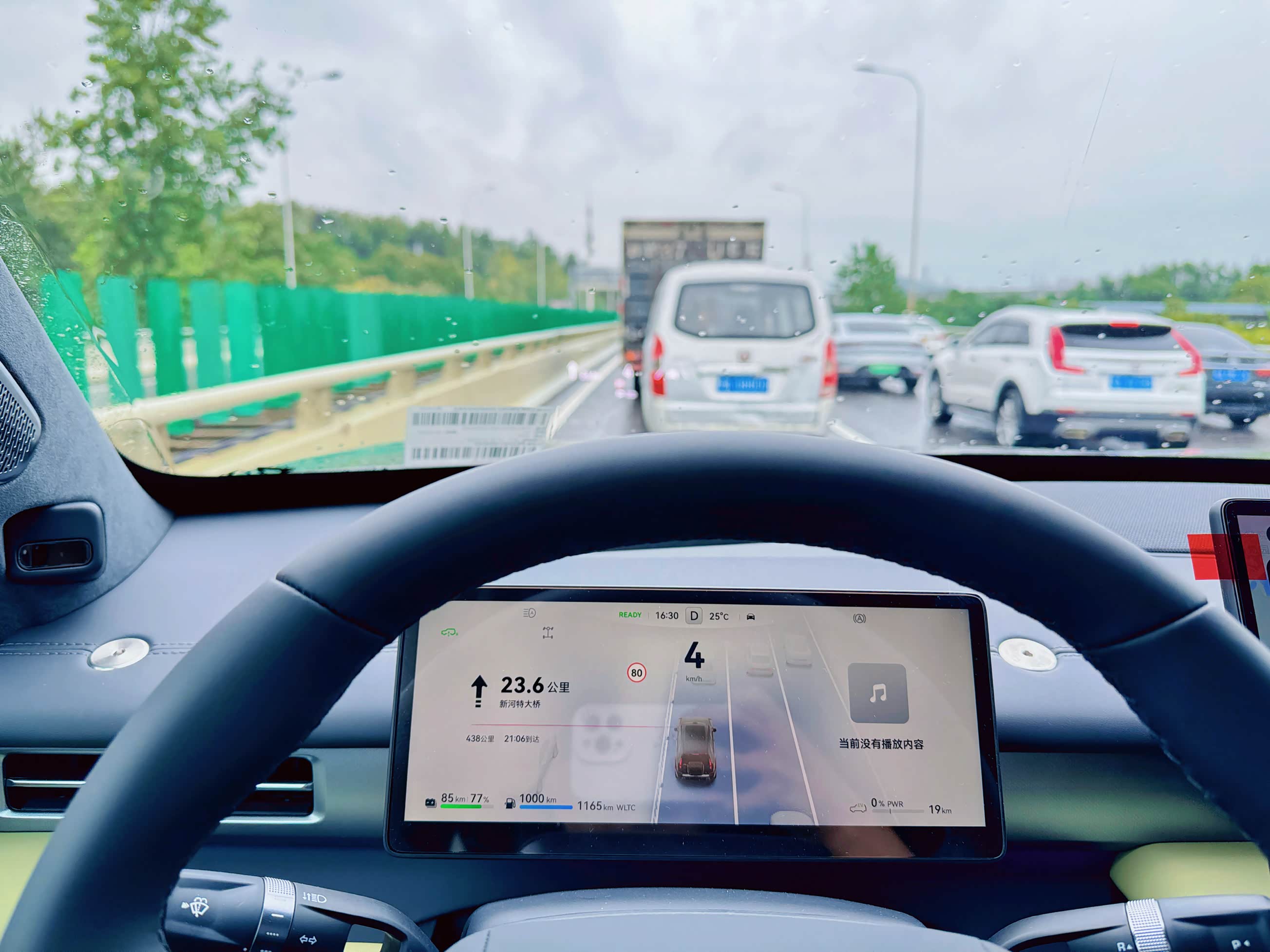 上高速前大概有45公里的环线,限速80km/h。此时总里程增加了14公里,电续航减少了10公里。
