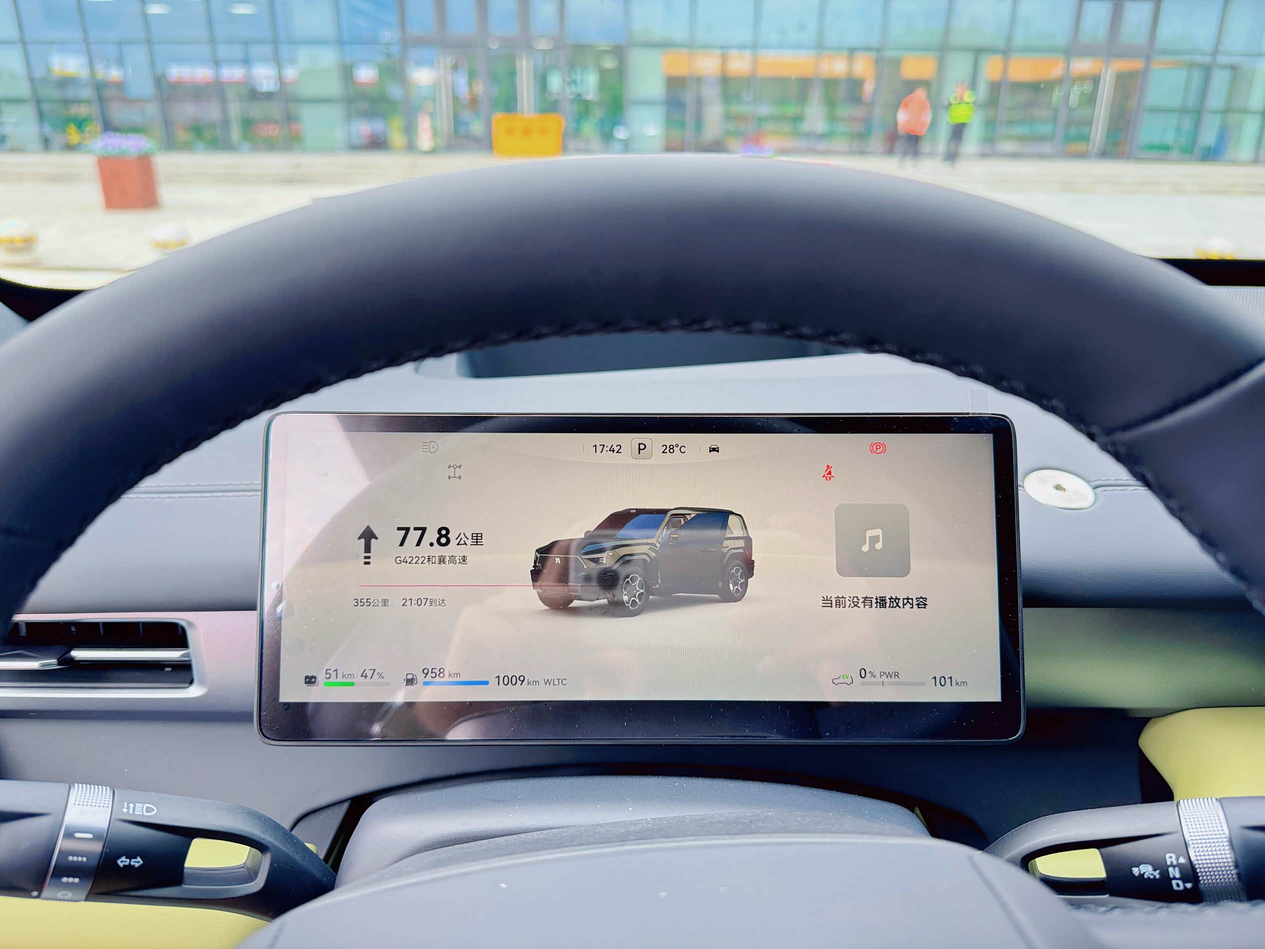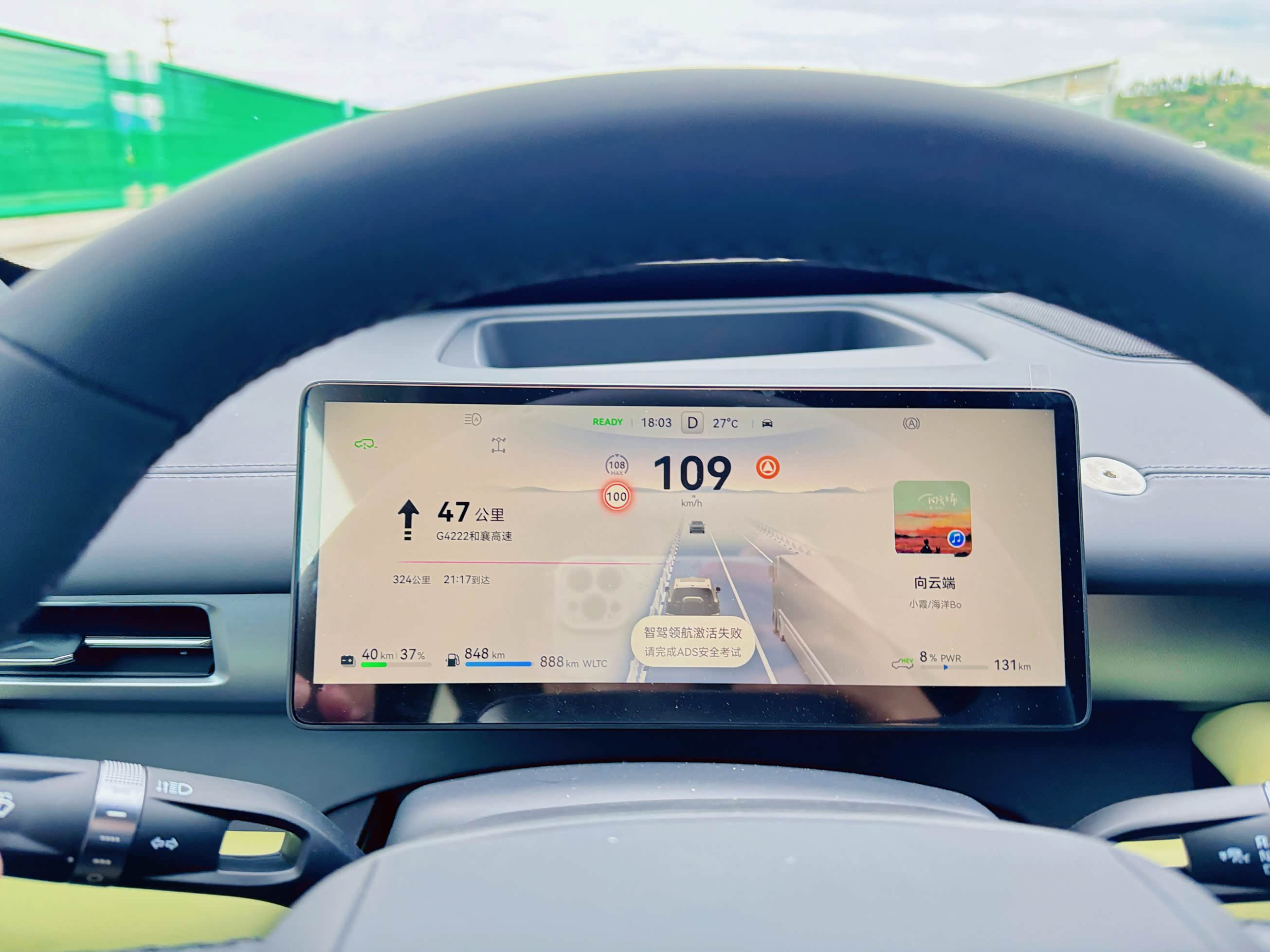 马上上高速,随手拍了一下。油续航里程仍为1000公里未变。