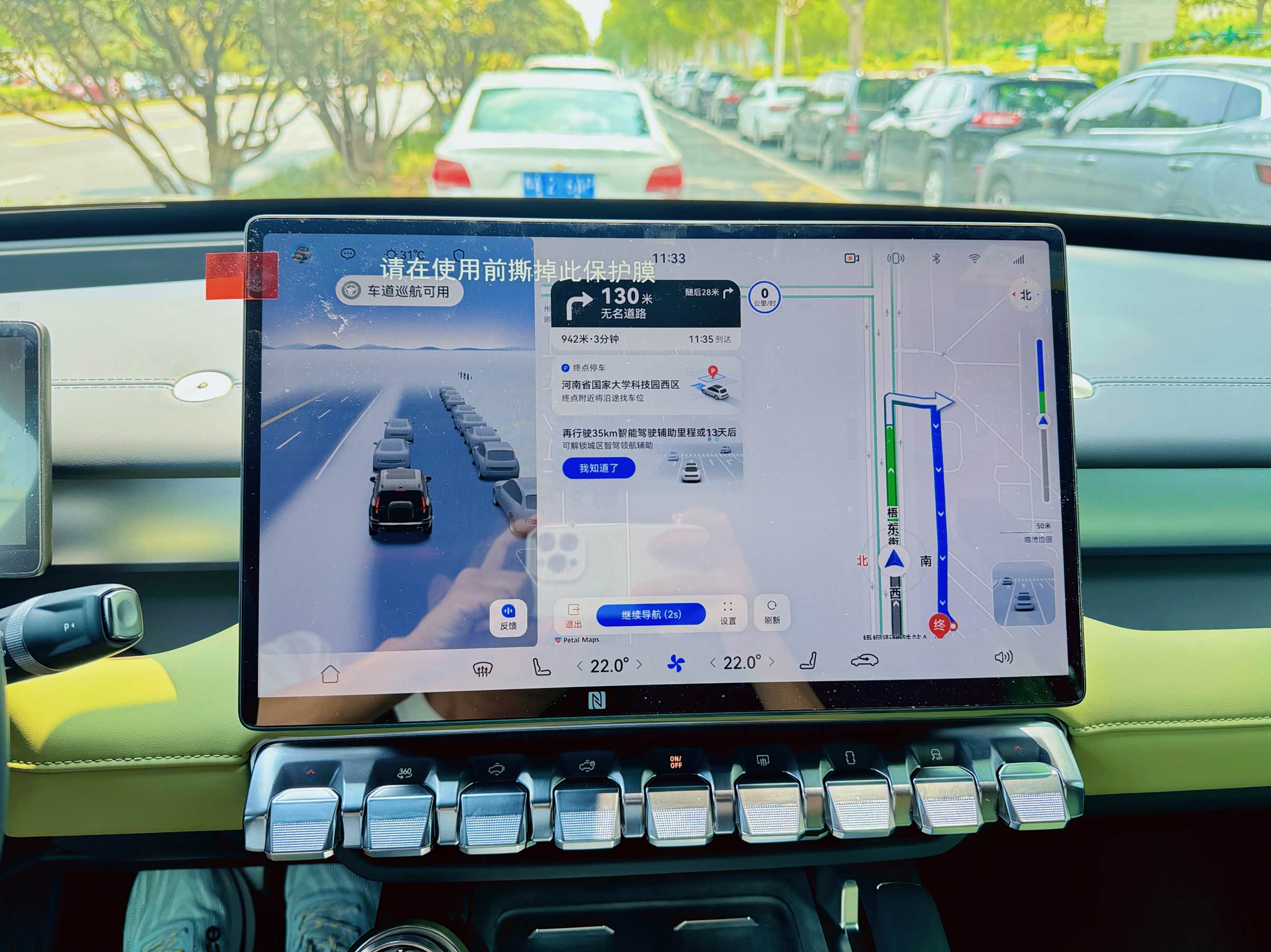 第二天兴冲冲的去试市区智驾辅助功能,屏幕提醒需要继续用100公里高快路智驾辅助或等待14天后才能开放市区智驾辅助功能,咋不早点说呢?对得起我熬夜到一点吗?啊,对得起我吗?良心疼不疼?