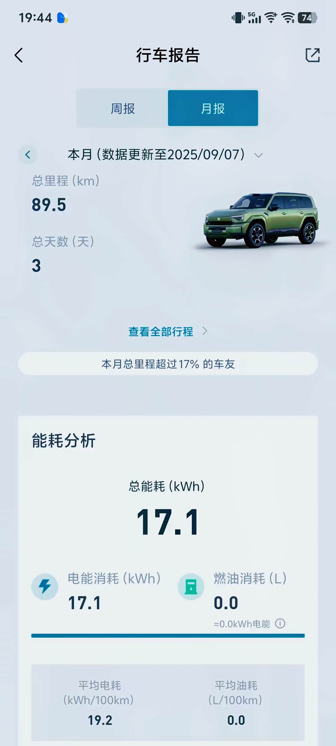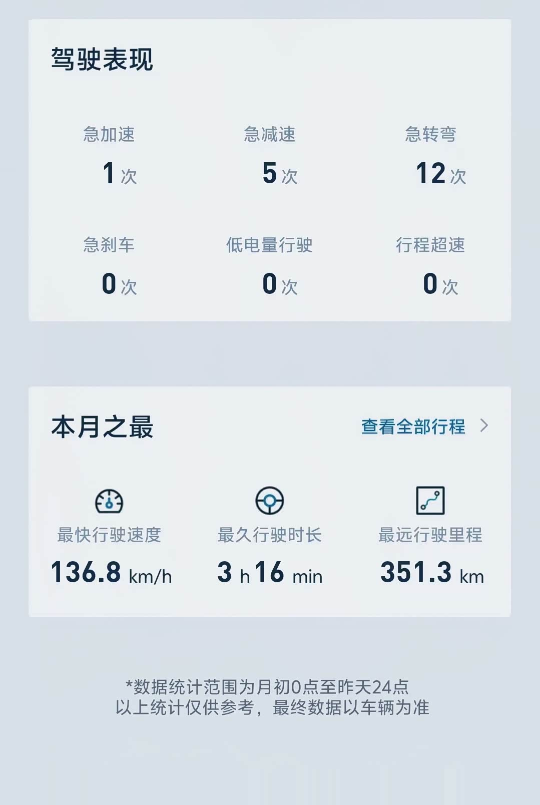 猛士App里统计的8月份行车数据