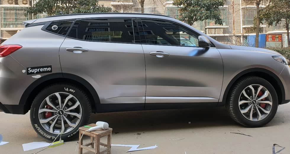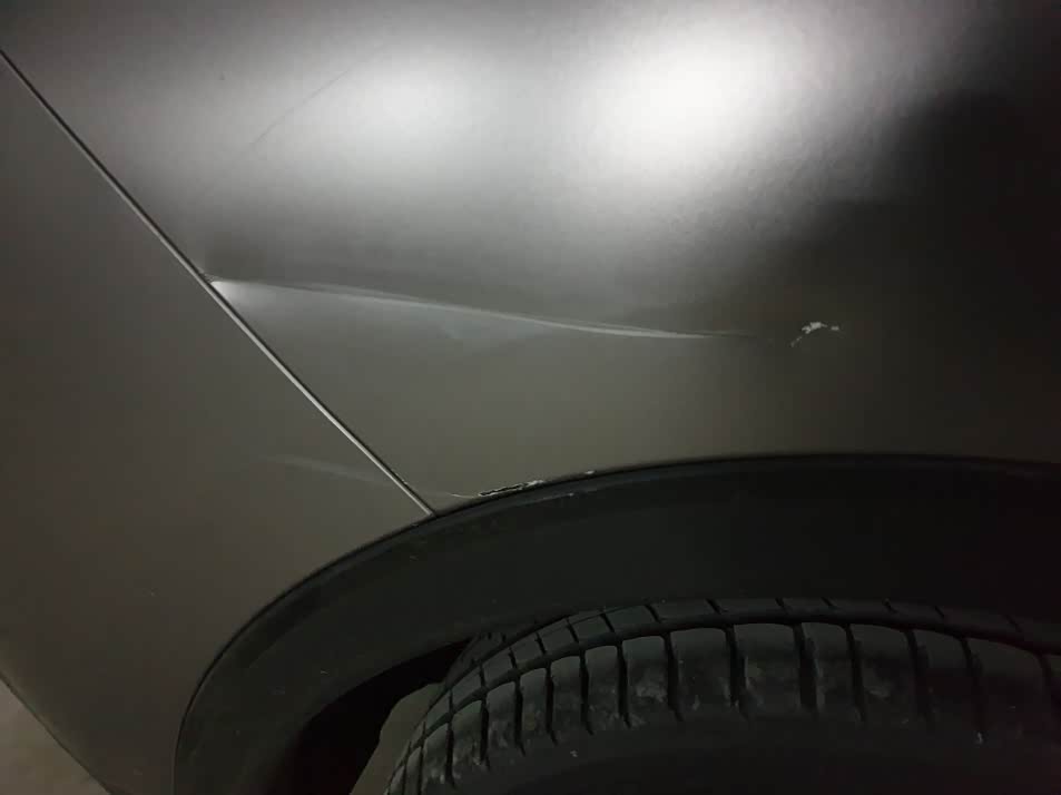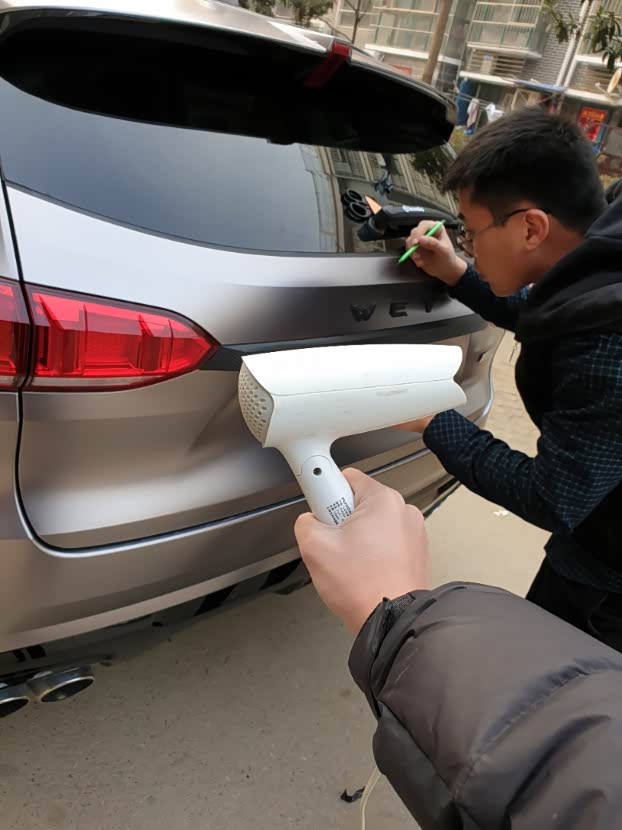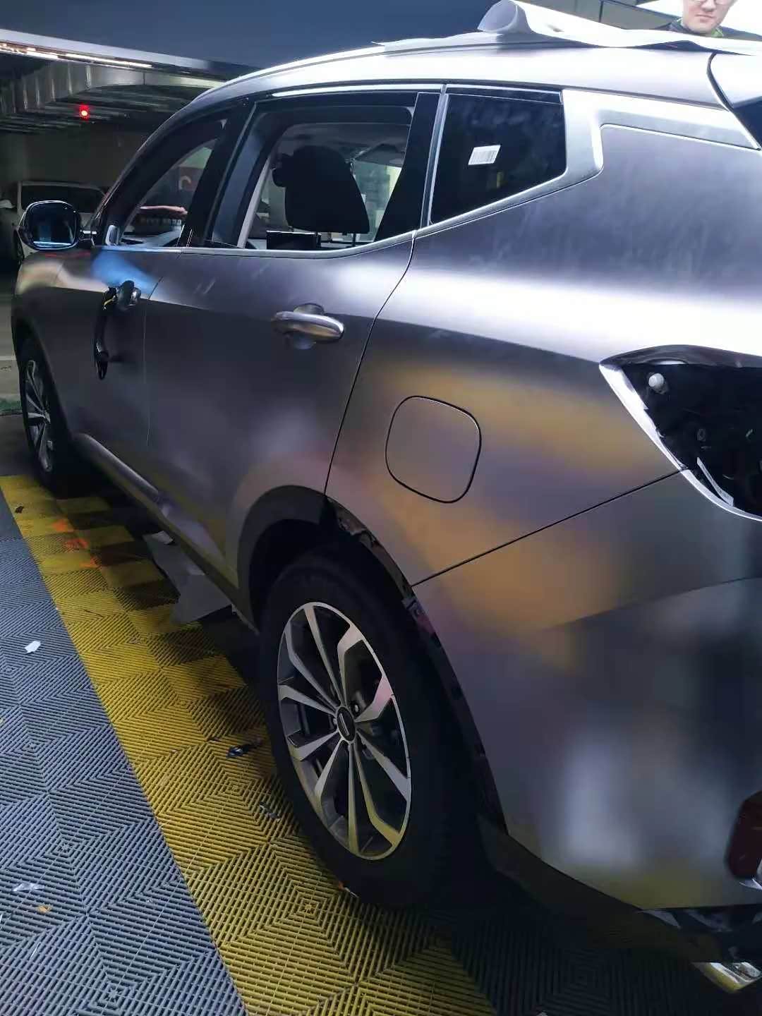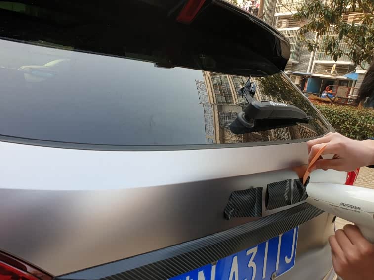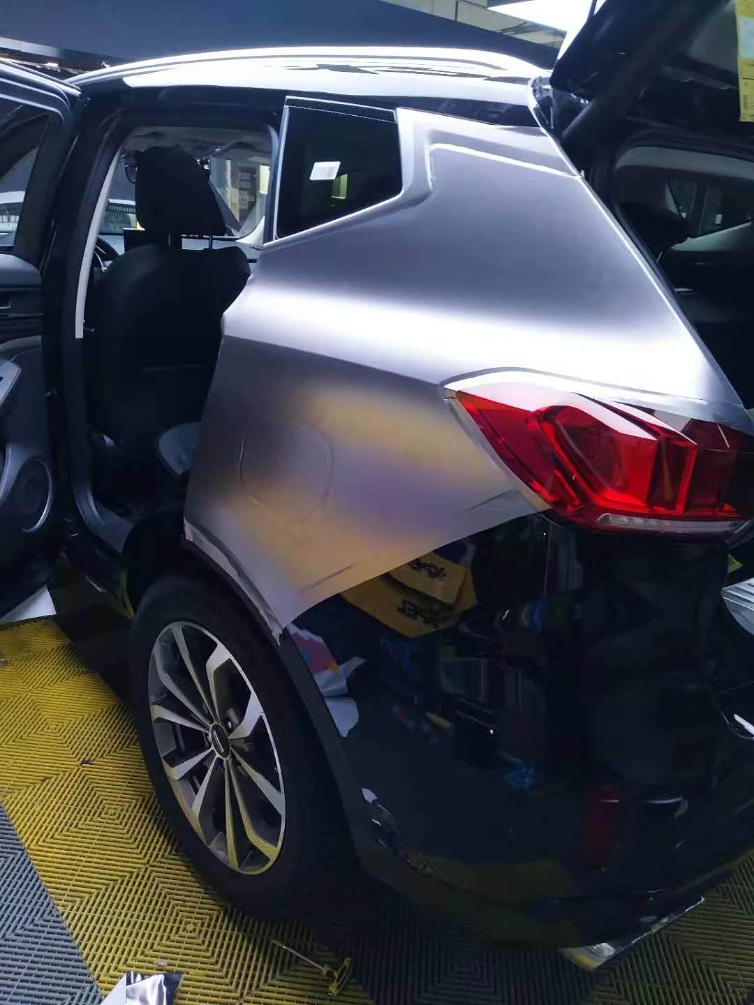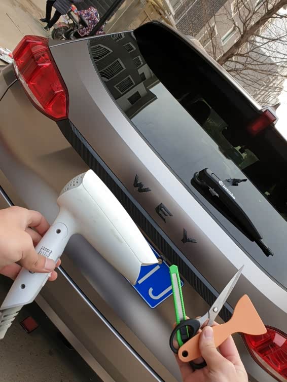 倒车晚上蹭到拖拉机了,修车要撕下来膜,算了,不管了,贴个贴画得了